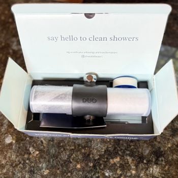 Flow & Pressure: In our timed test, the Duo filled 1 gallon in 35.7 seconds, compared to 27.5 seconds unfiltered — about a 30% slowdown. In practice, shower pressure still felt strong and steady, even with both cartridges inline.